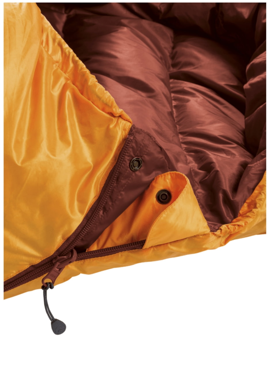 Kachní peří s plnivostí 550 Cuin poskytuje vysokou izolaci při dobré sbalitelnosti a stabilním výkonu v chladných podmínkách. Náplň 1000 g je navržená pro náročné použití v horách a pro expediční nocování. Konstrukce komor podporuje rovnoměrné rozložení výplně a konzistentní tepelný komfort.