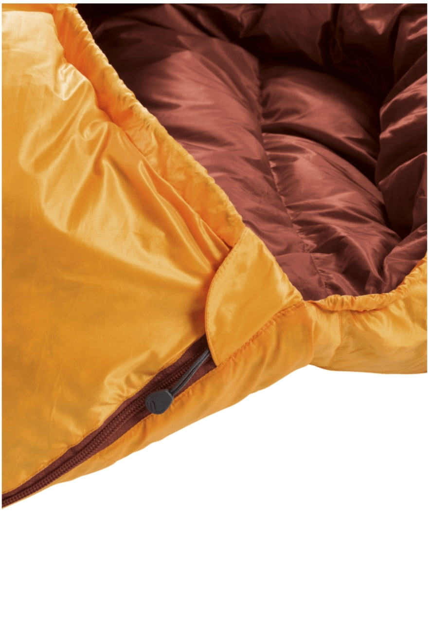 Jemný polyester s hustou vazbou je příjemný na dotek a podporuje komfort při spánku. Lehká tkanina pomáhá udržet stabilní mikroklima uvnitř spacáku. Recyklovaný základ je praktický pro časté používání a dlouhou životnost.