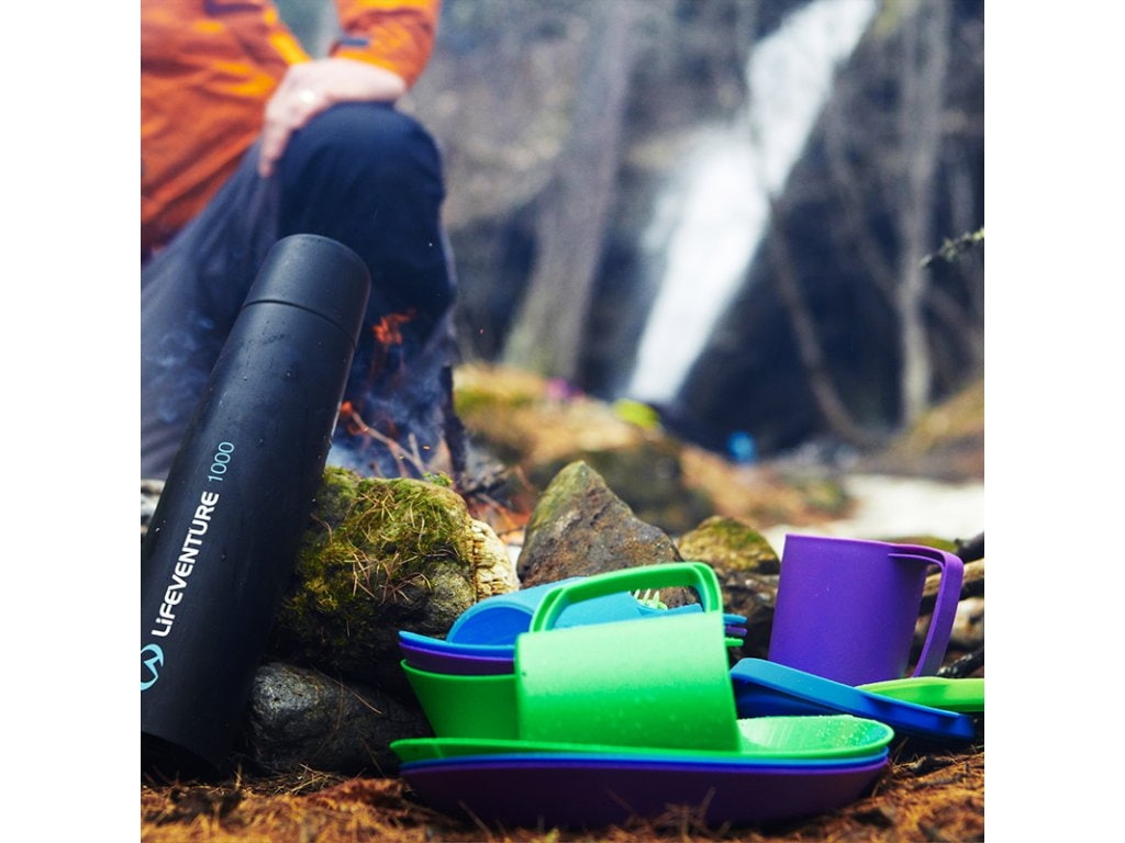 Lifeventure Ellipse 4-Piece Set je lehká cestovní sada nádobí pro 1 osobu, která se hodí na kempování, turistiku, festivaly i do dodávky. V balení dostaneš talíř, misku, hrnek a příbor, takže máš kompletní základ pro jídlo v přírodě bez improvizací. Nádobí je vyrobené z odolného plastu, je BPA free a zvládne běžné outdoor používání, ať už jíš rychlou večeři v kempu nebo snídani na výletě.