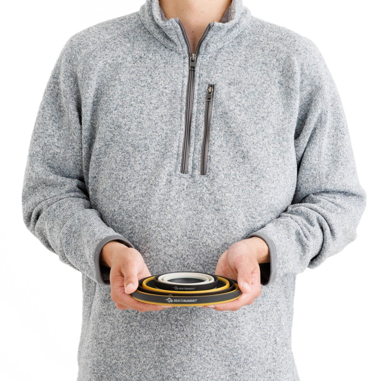 Sada ultralehkého skládacího nádobí od Sea To Summit je ideálním parťákem na veškeré aktivity, kde rozhoduje váha a ušetřené místo v batohu. V sadě naleznete vše potřebné pro jednu osobu (1x větší miska, 1x menší miska a 1x hrnek). Díky harmonikovému skládání nádobí lze velmi jednoduše a rychle složit do placky. Pevné dno misky lze využít jako prkýnko na krájení či pevnou podložku. Miska má pevný horní okraj, čímž zlepšuje manipulaci a úchop. Na hrnečkách zase naleznete prostřední nylonový proužek, který zabraňuje opaření. Celou sadu lze velmi kompaktně složit do sebe.