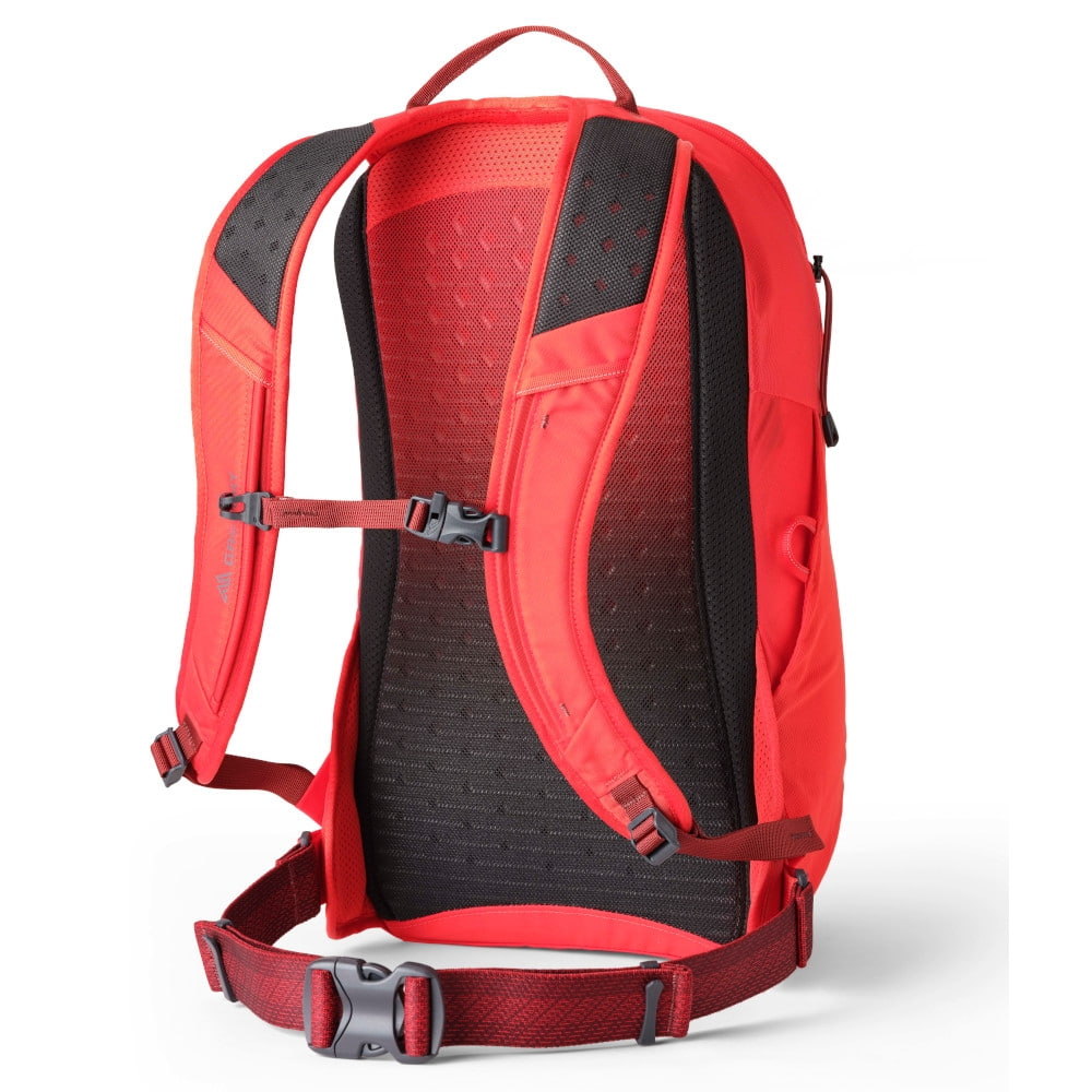 Hlavní komora na zip má vlastní tvarované poutko pro snadné otevírání. Jedna boční síťovaná kapsa na láhev s vodou má šikmý vstup pro pohodlný přístup, druhá boční kapsa je na zip a spolu s klipem na klíče tak bezpečně pohlídá Vaše cennosti. Díky horní zipové kapse se na svých cestách rychle dostanete k obsahu batohu. Gregory Kiro 20 má nízkoprofilový úchyt na trekové hole s elastickým zajištěním nahoře i dole, takže se nemusíte bát, že byste o ně při svém výletu přišli. Součástí batohu je i pláštěnka, která je uložena v samostatné přední zipové kapse a v případě nenadálé změny počasí tak jednoduše a rychle ochráníte svůj batoh před deštěm.