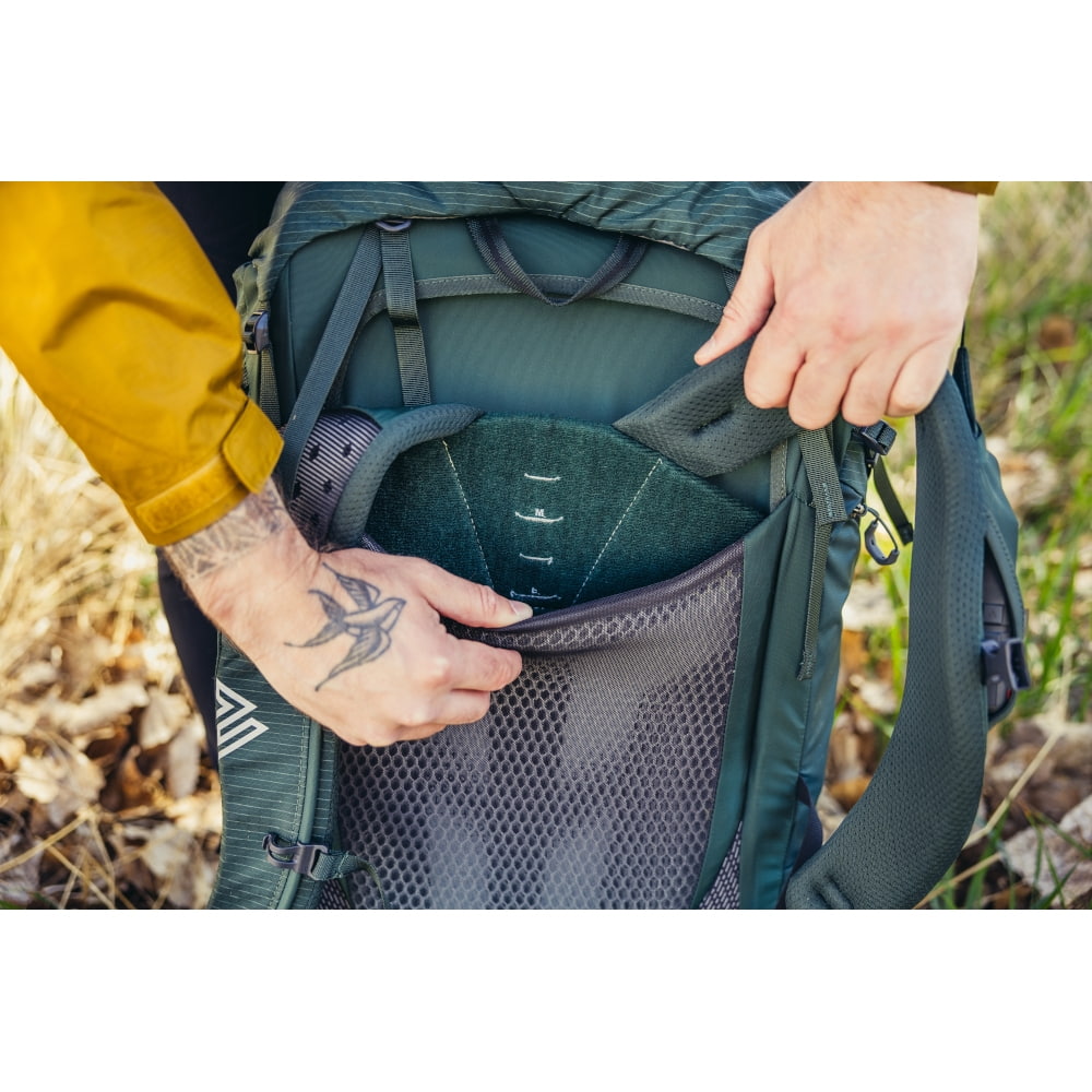 Objevte dokonalou rovnováhu mezi nízkou hmotností, pohodlím a výkonem s batohem Gregory Paragon! Díky inovativnímu zádovému systému Air-Cushion poskytuje výjimečnou prodyšnost a komfort i při celodenním nošení. Bederní pás FreeFloat se dynamicky přizpůsobuje pohybům těla, zajišťuje vynikající stabilitu a rovnoměrně rozkládá zátěž. Vylepšený bederní pás a bederní opěrka umožňují lepší přizpůsobení mezi různými velikostmi trupu, což zvyšuje oporu a polstrování. Nový výkonný materiál obsahuje 40 % recyklovaného nylonového ripstopu, čímž snižuje uhlíkovou stopu celé kolekce o 25 % ve srovnání s nerecyklovanou verzí. Zadní panel je vylepšen hladkou potištěnou síťovinou a polstrováním Air-Cushion, které zajišťuje pohodlí bez použití pěny a maximální prodyšnost. Praktická kapsa na ramenním popruhu umožňuje rychlý přístup k brýlím, svačině nebo komunikátoru Garmin® inReach®, abyste zůstali ve spojení i na stezce. Ramenní popruhy byly vylepšeny o lineární síťovinu, optimalizované perforace a hladký povrch, což zajišťuje vyšší komfort při styku s pokožkou. Batoh disponuje výškově nastavitelným víkem batohu se dvěma kapsami včetně karabinky na klíče. Kapsy ze strečové síťoviny umístěné ve spodní části batohu pojmou váš další nezbytný materiál, stejně tak i velké kapsy na bederáku přijdou určitě vhod. Samozřejmostí jsou také poutka na hole nebo cepíny, takže vaše ruce zůstanou v případě potřeby zcela volné. Poutka umístěná na horní i spodní části batohu jsou opatřena reflexním šitím pro zvýšení viditelnosti a bezpečnosti. Naprostou dominantou tohoto batohu jsou tři vstupy do hlavní komory: horní, spodní a boční vstup na zip, díky kterému vidíte celý obsah batohu během chviličky a není tak potřeba přehrabávat všechny sbalené věci, kvůli jedné maličkosti. Díky své extrémně nízké hmotnosti a promyšlenému designu je Paragon ideálním společníkem na víkendové výlety i delší treky.
