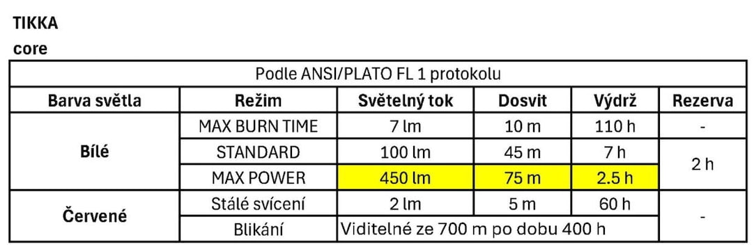 Nízký: 7 lm | dosvit 10 m | výdrž 110 h