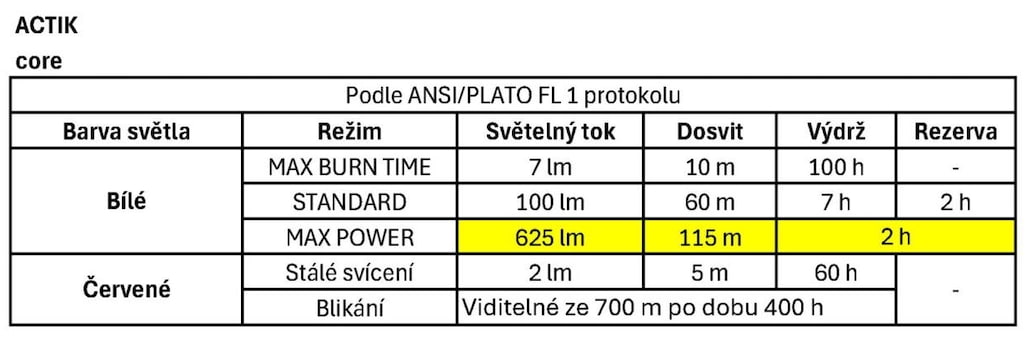Maximální výkon: 625 lm | dosvit 115 m | výdrž 2 h