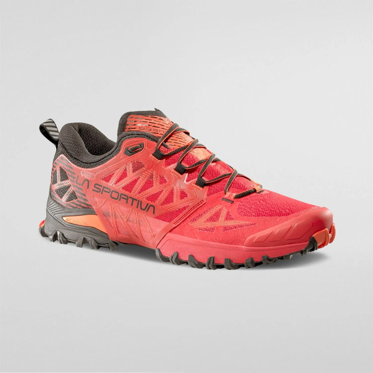 Dvousložková podešev FriXion Red s bočními záběrovými bloky Impact Brake System drží na kamení, suti, kořenech i na mokré trávě a vzorek 4 mm je naladěný na technický horský podklad. Konstrukce mezipodešve EVA compression doplňuje Stability Control Insert pro stabilitu a rock guard vložka pro ochranu proti ostrým kamenům, takže došlap zůstává pevný i ve chvíli, kdy terén nutí nohu pracovat v extrémních úhlech. Stélka Ortholite Hybrid Mountain Running Ergonomic 4 mm přidává komfort pod chodidlem a podšívka Gore-Tex Invisible Fit drží ochranu bez zbytečného pocitu objemu navíc.