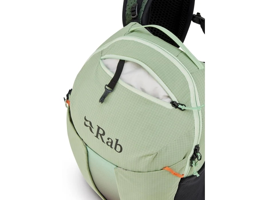 Rab Airox 18 nabízí také praktickou výbavu pro pohodlný den na trase. Nechybí boční strečové kapsy, kapsa na zip v horní části s klipem na klíče, velká přední strečová kapsa na mapu nebo vrstvu navíc, uchycení trekových holí pomocí bungee systému a přihrádka pro 2l hydrovak s vývodem na hadičku. Když se zhorší počasí, potěší integrovaná pláštěnka. Rab Airox 18 je ideální lehký turistický batoh pro jednodenní túry, kdy chceš spojit prodyšnost, nízkou hmotnost a plně vybavené řešení pro pohyb v teplejších podmínkách.
