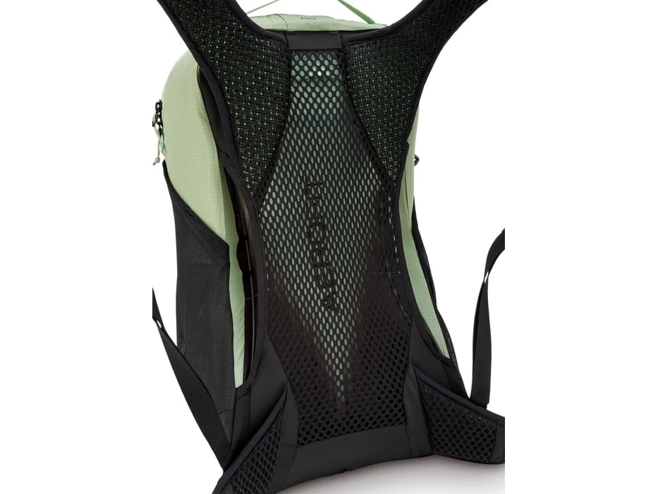 Hlavní předností je zádový systém AEROFIT s napnutou síťovinou, který umožňuje proudění vzduchu mezi batohem a zády a pomáhá udržet záda sušší i při intenzivním pohybu. Tělu přiléhající konstrukce se zavěšenou síťovinou navíc dobře rozkládá hmotnost a zvyšuje komfort od začátku túry až do posledního kilometru. Perforované ramenní popruhy podporují prodyšnost, zatímco kompaktnější profil batohu pomáhá snížit hmotnost a udržet náklad stabilní i při dynamičtějším tempu. Odolná tkanina 140D ripstop nylon zároveň zvládá opakované používání i náročnější trailové podmínky.