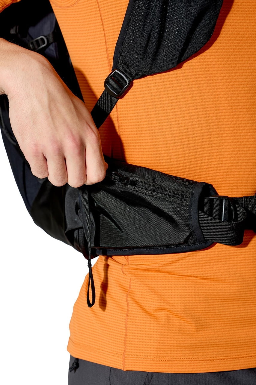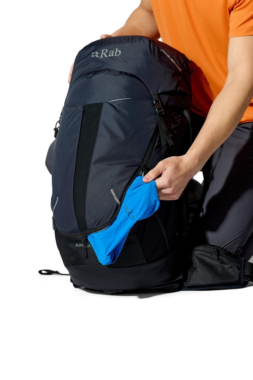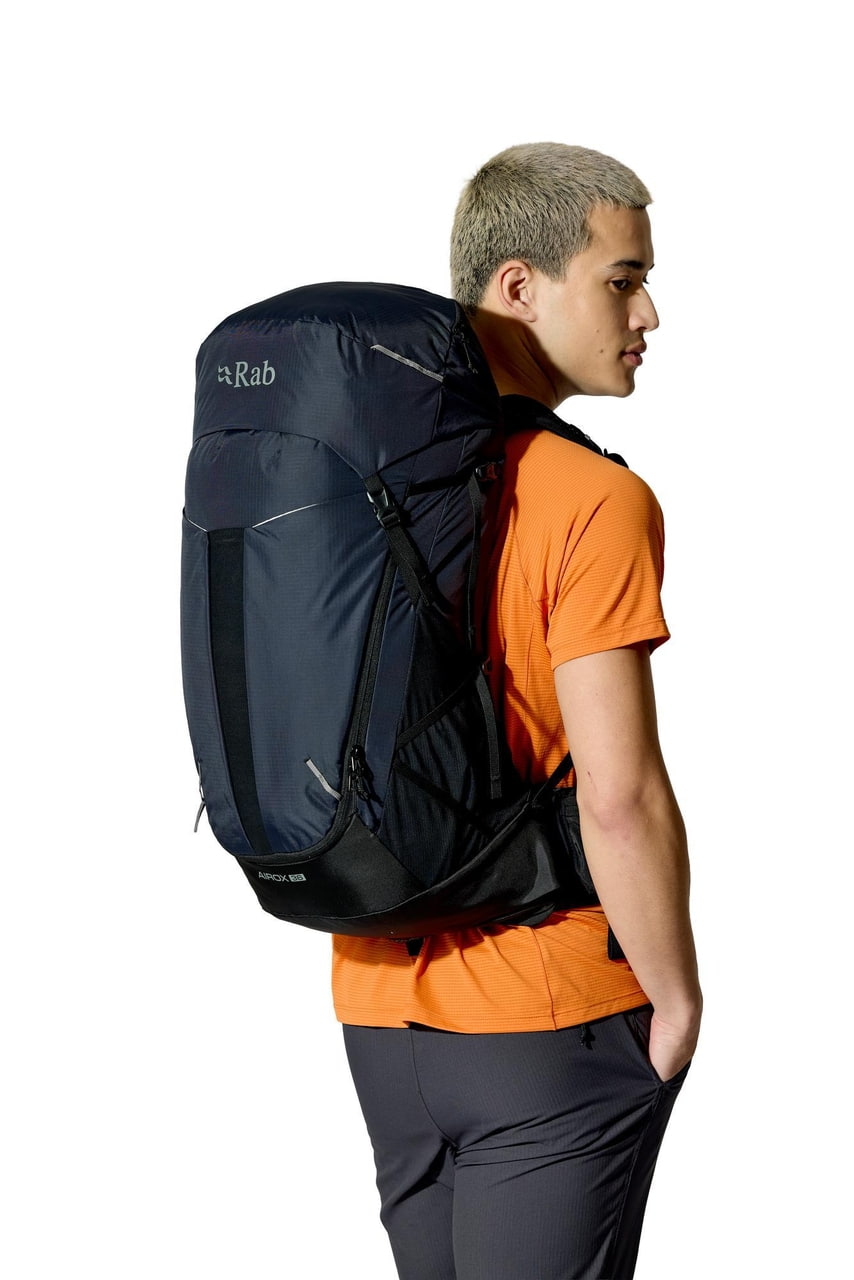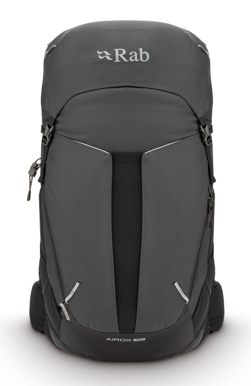 Rab Airox 36 je plně vybavený batoh pro delší výšlapy a hut to hut přechody. Víko s vnitřní a vnější kapsou, vstup do hlavního prostoru pomocí stahování šňůrkou a doplňkový U tvarovaný přední zip usnadňují organizaci i rychlý přístup k vybavení. Nechybí velké boční strečové kapsy, přední strečová kapsa na mapu nebo další vrstvu, uchycení trekových holí pomocí bungee systému, přihrádka pro 3l hydrovak s vývodem na hadičku ani integrovaná pláštěnka. Nastavitelná délka zad, bederní pás s forward pull dotahováním a horní i spodní boční kompresní popruhy pomáhají přizpůsobit batoh přesně na tělo i typ výbavy. Rab Airox 36 je ideální lehký turistický batoh pro horké dny v horách, když chceš spojit odvětrání, pohodlí a plně vybavený objem pro delší trasy.