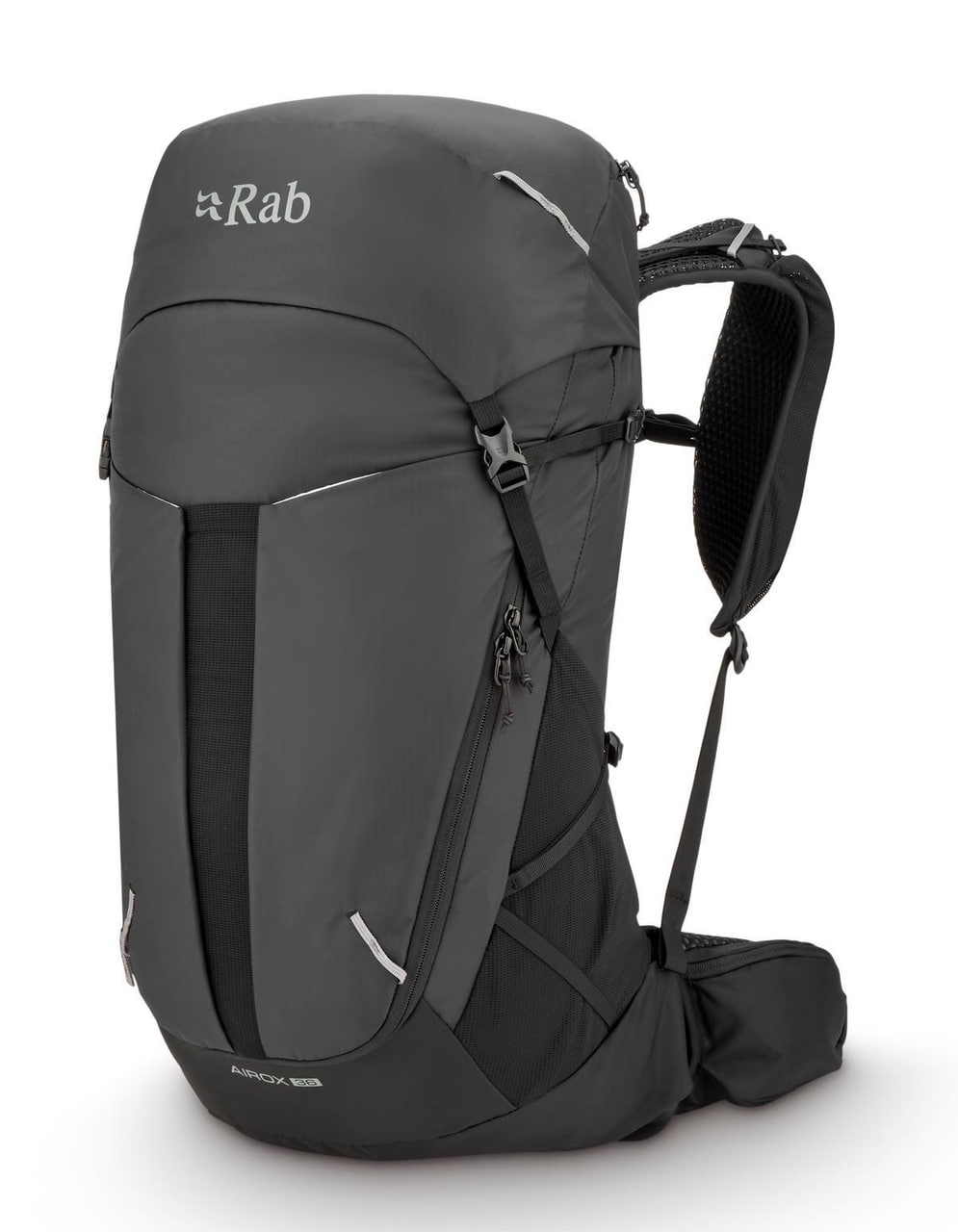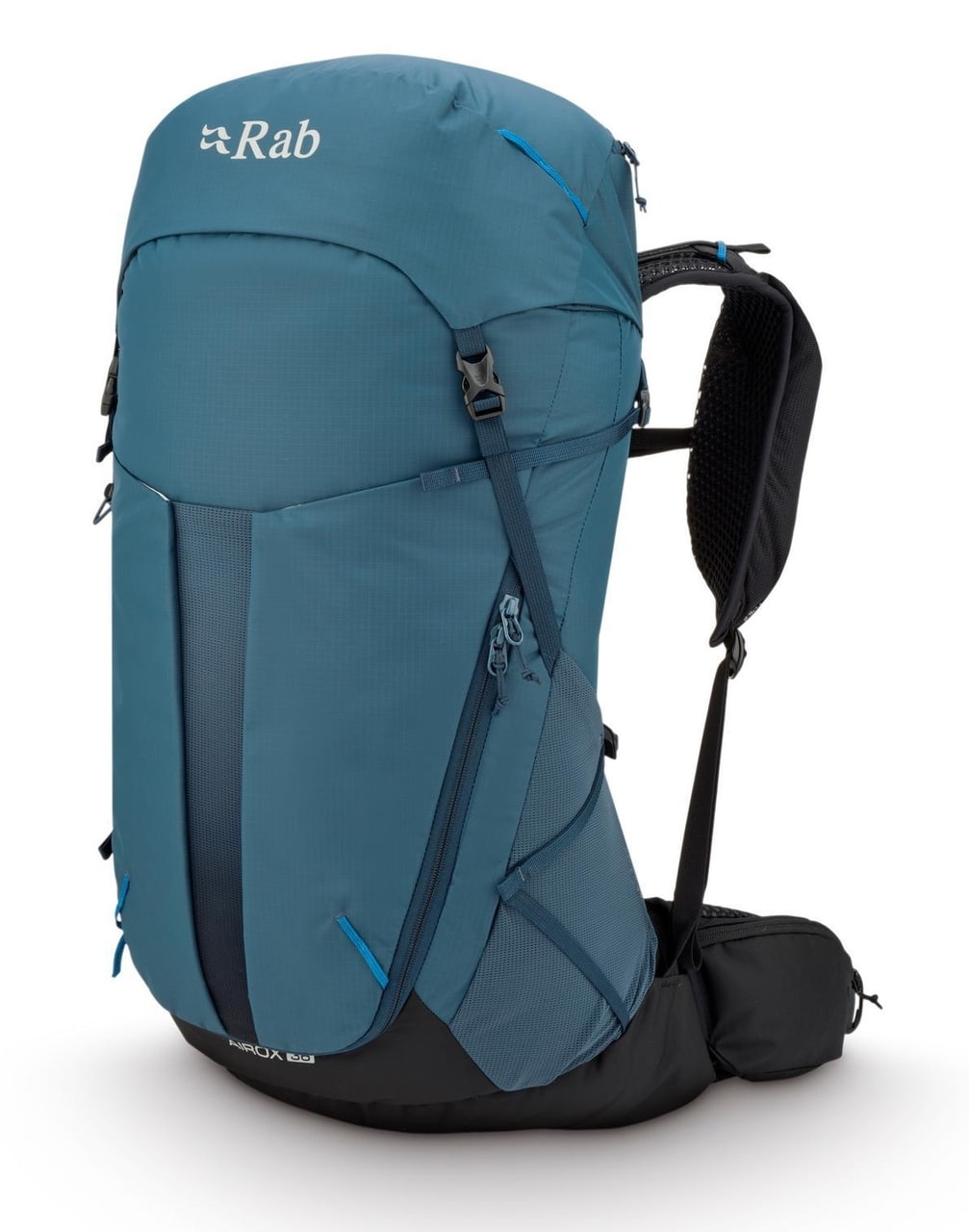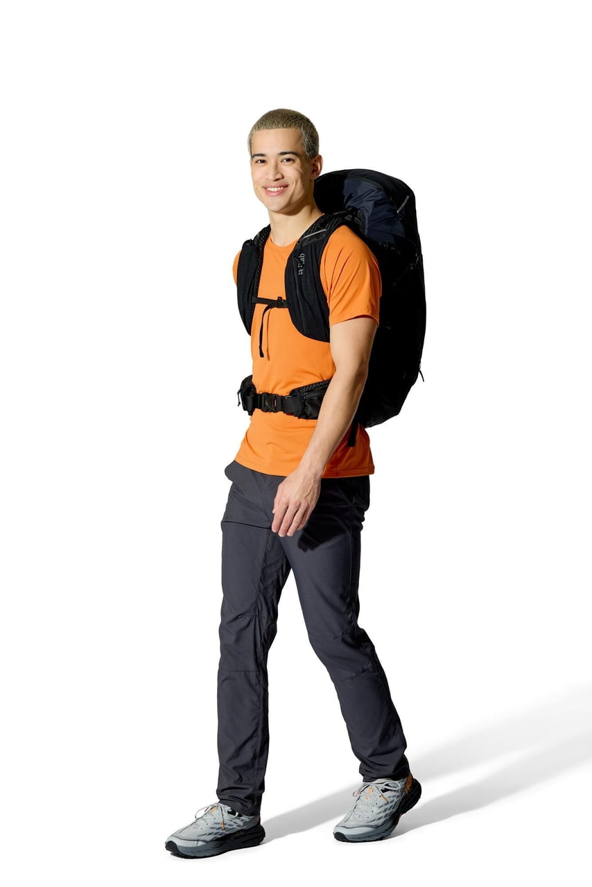 Rab Airox 36 je plně vybavený batoh pro delší výšlapy a hut to hut přechody. Víko s vnitřní a vnější kapsou, vstup do hlavního prostoru pomocí stahování šňůrkou a doplňkový U tvarovaný přední zip usnadňují organizaci i rychlý přístup k vybavení. Nechybí velké boční strečové kapsy, přední strečová kapsa na mapu nebo další vrstvu, uchycení trekových holí pomocí bungee systému, přihrádka pro 3l hydrovak s vývodem na hadičku ani integrovaná pláštěnka. Nastavitelná délka zad, bederní pás s forward pull dotahováním a horní i spodní boční kompresní popruhy pomáhají přizpůsobit batoh přesně na tělo i typ výbavy. Rab Airox 36 je ideální lehký turistický batoh pro horké dny v horách, když chceš spojit odvětrání, pohodlí a plně vybavený objem pro delší trasy.